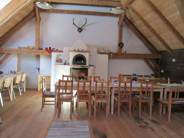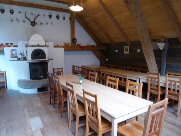 Die Zimmer befinden sich im ausgebauten Dachgeschoss. Der Aufenthaltsraum mit Küche bietet Platz für ca. 30 Personen und kann auch als Seminarraum genutzt werden. Ein weiterer Seminarraum für 50 Personen befindet sich im Nebengebäude. Ideal für Gruppen oder Feiern!