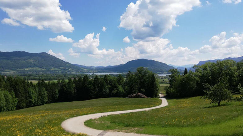 Das Ferienhaus befindet sich neben unserem Wohnhaus und ist umgeben von Wiesen und Wald sowie einer schönen Aussicht auf den Mondsee.