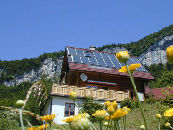 Unser Holzblock Wohlfühlhaus befindet sich im Herzen des Salzkammergutes auf einem Südhang mit unverbaubaren Panoramablick.