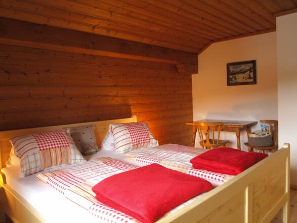 * 2 rustikal eingerichtete Schlafzimmer (ein Zweibett- und ein Dreibettzimmer) und