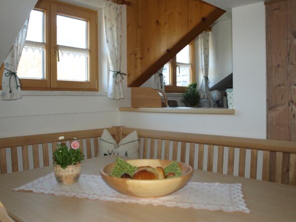 Die Wohnung befindet sich im Dachgeschoß unseres Hauses, die Sie bequem über unseren neu errichteten, seperaten Eingang über eine Wendeltreppe erreichen.