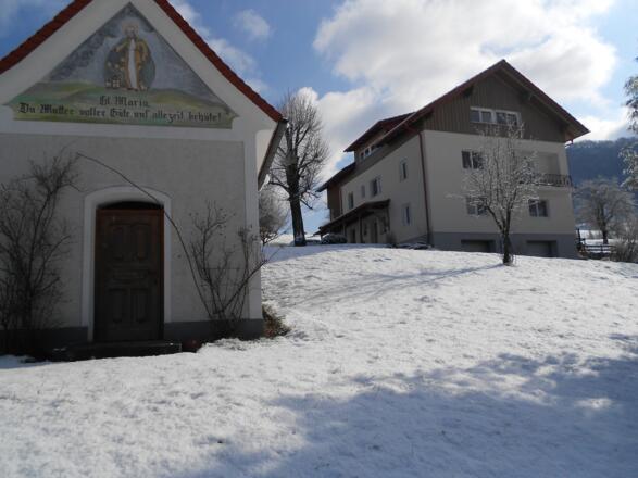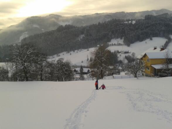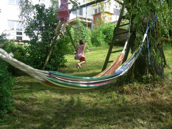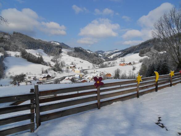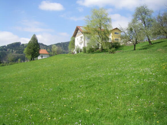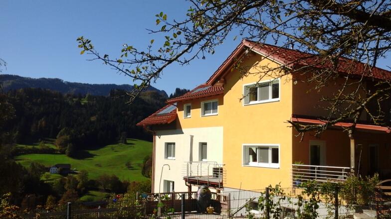 Auf einer sonnigen Anhöhe gelegen genießt man von der Ferienwohnung aus einen weiten Ausblick ins Tal und auf die umliegenden Berge. Ein grosser Garten und Spielbereich ist zum Entspannen und Austoben vorhanden.