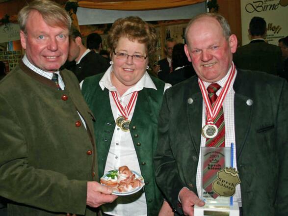 Das stellen wir bei jährlich durchgeführten Bewerben, Verkostungen und Bewertungen bei Orts-, Landes-. und Bundesentscheidungen unter Beweiß. Ob Most, selbstgebackenes Bauernbrot oder Speck, unsere Produkte schmecken einfach sehr gut und wurden schon mehrmals mit Goldmedaillen und ersten Rängen ausgezeichnet. Bei der Messe „Ab Hof 2009“ bekamen wir für unser Karreerenkerl die Goldmedaille und die höchste Punkteanzahl und somit den Titel „Speckkaiser 2009“.