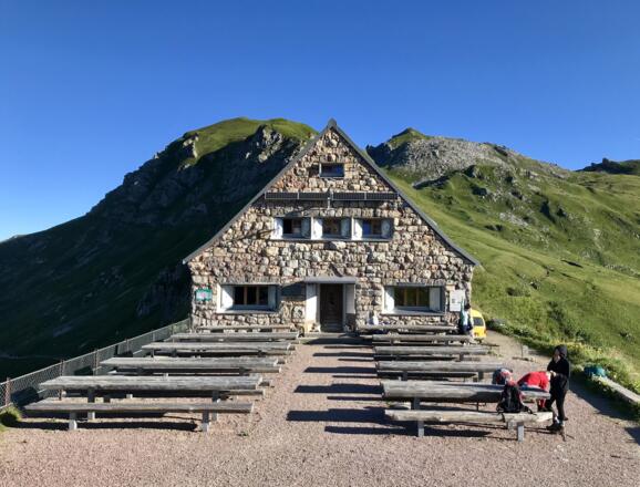 Von ungefähr Mitte Juni bis etwa Mitte Oktober ist die Hütte durchgehend bewirtschaftet; die Gaststube bietet 60 Plätze. Im Winter ist dieser Hüttenteil geschlossen.