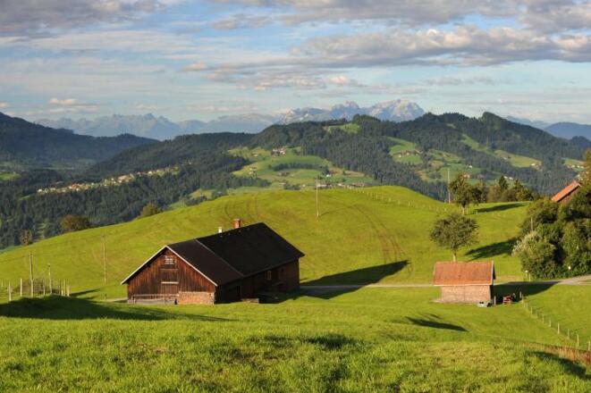Die knapp zweistündige Rundwanderung auf den Hüttersberg ist eine ruhige, aussichtsreiche Tour, die immer wieder den Blick auf das großartige Alpenpanorama lenkt. Die Gipfelschau reicht von der Nagelfluhkette über die Allgäuer Hochalpen, Bregenzerwälder Berge und das Rheintal bis hin zum Schweizer Alpsteinmassiv mit dem mächtigen Säntis.